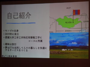 モンゴル出身 愛媛大学工学部3年