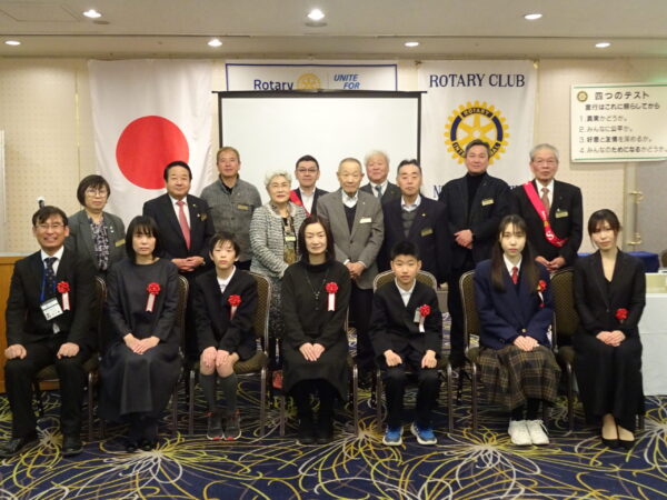 新居浜南ロータリークラブの例会では、特選受賞の6作品7名の中から、2作品3名の児童生徒さんに研究を発表していただきました。